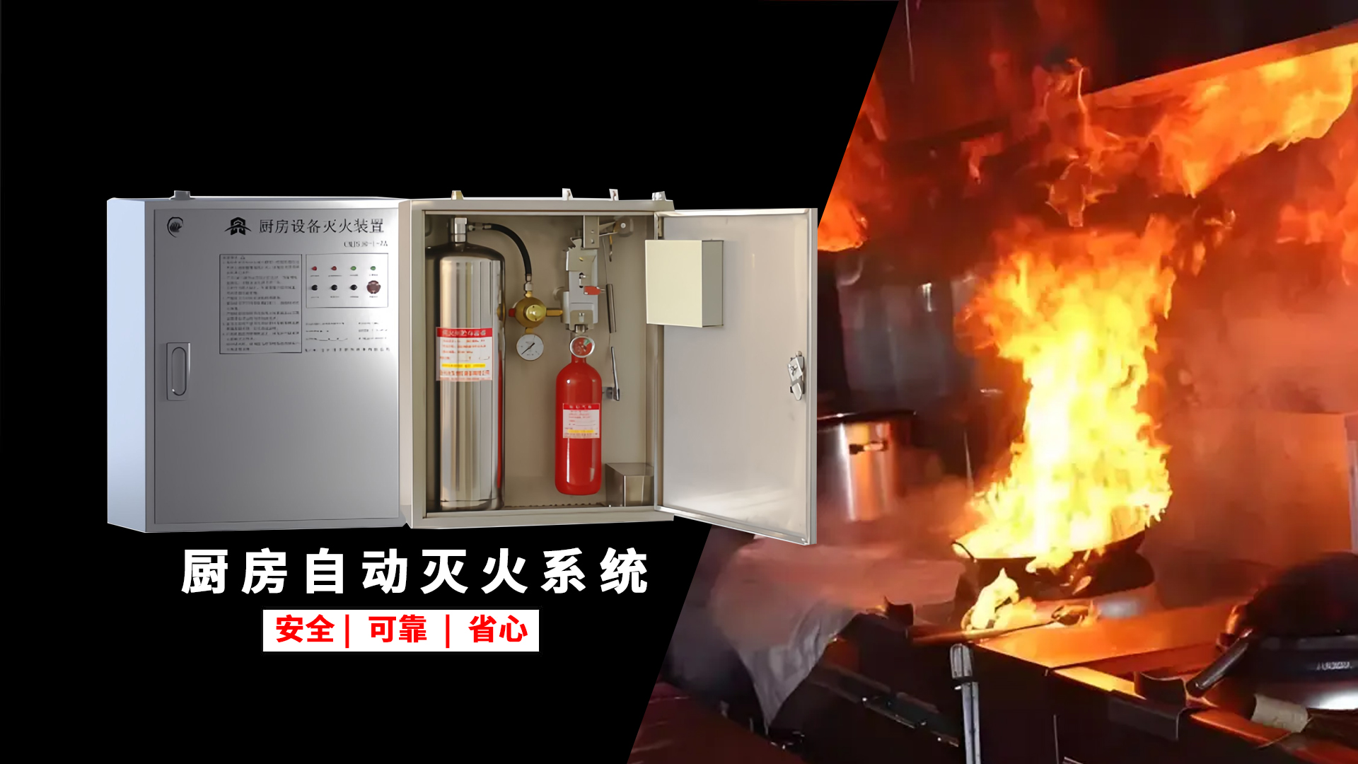 廚房設(shè)備滅火裝置,固定安裝于廚房等高濕熱環(huán)境中,由滅火劑瓶組(鋼瓶、虹吸管滅火劑)、聯(lián)動(dòng)閥、管路(滅火劑施放管路、冷卻管路)、噴嘴(專用霧化噴嘴)、閥門(液體單向閥和水流閥)、火災(zāi)探測(cè)部件(易熔金屬感溫器)、控制盤等組成的能自動(dòng)探測(cè)并實(shí)施滅火的箱式滅火裝置。